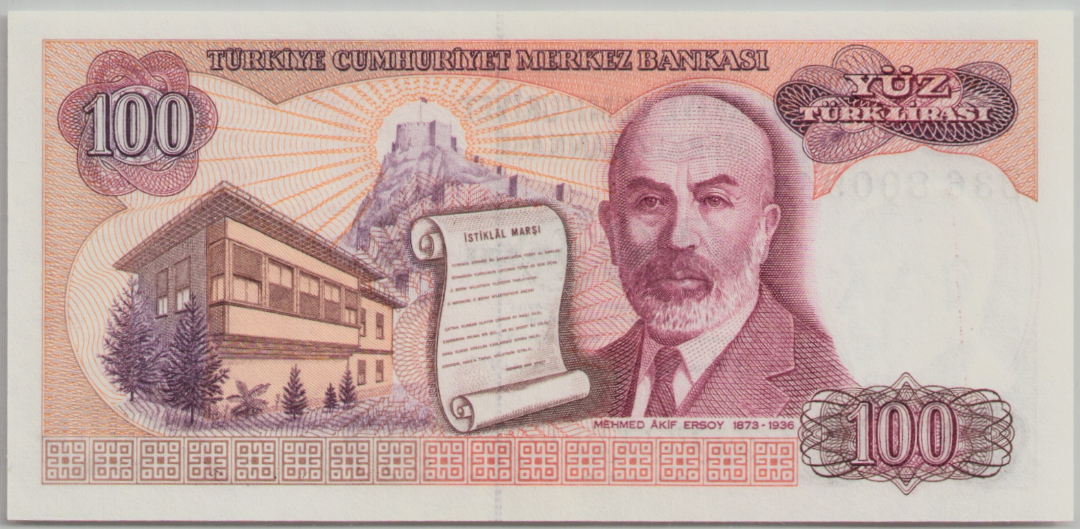 Arka yüz: Ankara Kalesi, Mehmet Akif Ersoyun portresi