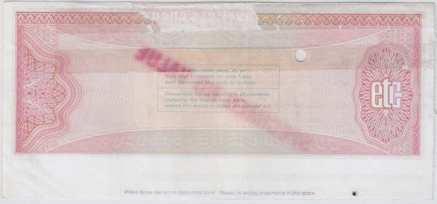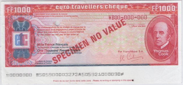 Travellers Cheque 1,000 Francs [Pick : --]