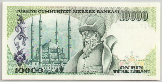 Arka yüz: Mimar Sinanın portresi ve Selimiye Camii (EDİRNE)