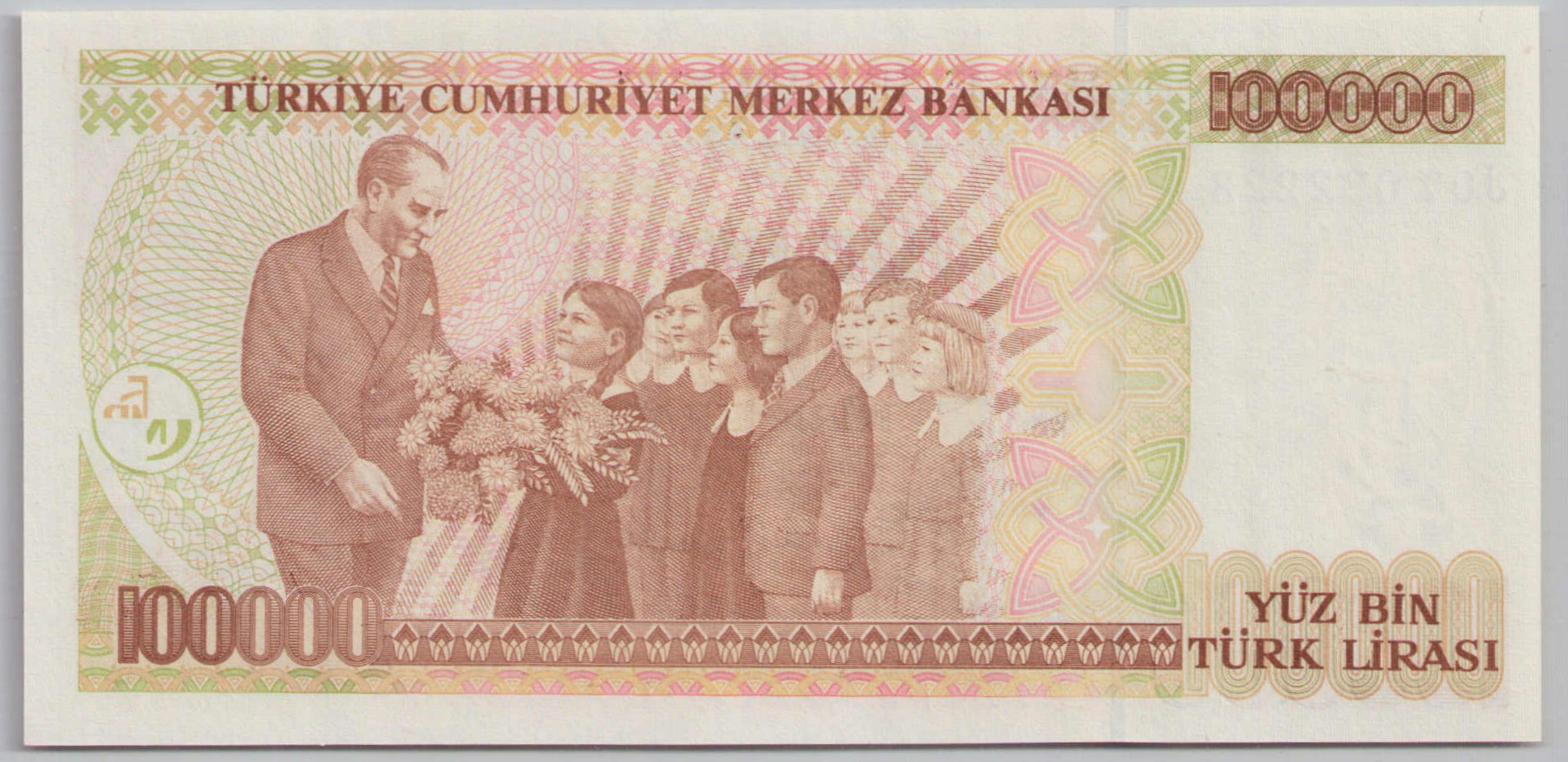 | Arka yüz | : | Atatürke çiçek sunan öğrenci grubu |