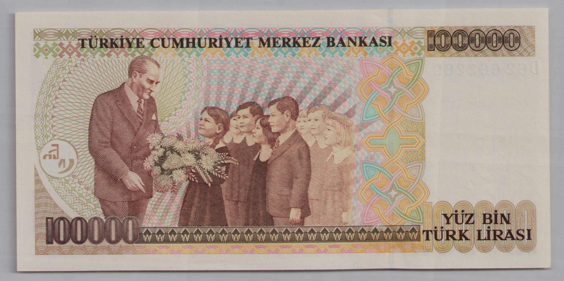 | Arka yüz | : | Atatürke çiçek sunan öğrenci grubu |