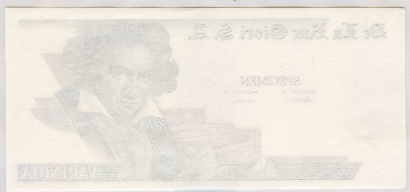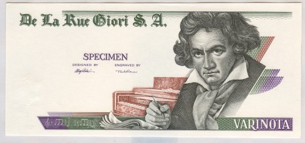 DeLaRue Beethoven specimen test note, uniface print